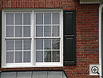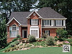 | Far-Field Test Pretty good resolution and fair detail, but limited dynamic range. This image is shot at infinity to test far-field lens performance. NOTE that this image cannot be directly compared to the other "house" shot, which is a poster, shot in the studio. The rendering of detail in the poster will be very different than in this shot, and color values (and even the presence or absence of leaves on the trees!) will vary in this subject as the seasons progress. In general though, you can evaluate detail in the bricks, shingles and window detail, and in the tree branches against the sky. Compression artifacts are most likely to show in the trim along the edge of the roof, in the bricks, or in the relatively "flat" areas in the windows. This is my ultimate "resolution shot,"