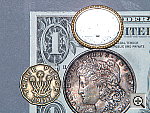 coins and brooch. All four corners of the frame are soft, with the right