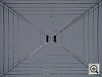 Moderately high resolution, 1,000 lines of "strong detail." Slightly higher than average barrel distortion, and high pincushion as well. The Optio MX turned in about an average performance for its 3.2-megapixel class on the "laboratory" resolution test chart. It started showing artifacts in the test patterns at resolutions as low as 600 lines per picture height, in both horizontal and vertical directions. I found "strong detail" out to at least 950 lines vertically, 1,050 lines horizontally, so a fair average would be 1,000 lines. "Extinction" of the target patterns occurred around 1,200 lines. Geometric distortion on the Optio MX is slightly high at the wide-angle
