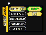 A "Virtual Dial," which we first saw on the D-550 Zoom digicam, accesses a range of preset shooting modes. The up arrow in the Four-Way Arrow pad enables the dial, which is actually an LCD display of the available scene modes. The right and left arrow keys scroll through the modes, rotating the "dial" onscreen. Program Auto is the default setting, but Portrait, Landscape Portrait, Landscape, Night Scene, Self Portrait, and Movie modes are also available. Each mode sets up the camera for specific shooting situations, with Night Scene mode extending available shutter times to four seconds. Portrait mode uses larger lens apertures, to capture the subject in front of a soft-focused background, while Landscape Portrait uses smaller lens apertures to get both the subject and the background in sharp focus at the same time, great for portraits in front of broad vistas (for example, the family standing in front of the Grand Canyon). Self Portrait mode is an interesting feature that lets you point the camera at yourself (in-hand) to take a self-portrait. The lens remains locked at the wide-angle setting in self-portrait mode, so you get a sharply-focused portrait. (This is a great mode for those shots of you and a friend in a cool location, or when you want to prove you actually visited a certain place, and there's nobody around to snap your picture for you.) Finally, Movie mode records moving images (without sound) with maximum lengths of 16 or 70 seconds, depending on your choice of resolution. (Resolution options for movies are 320x240 and 60x120.)