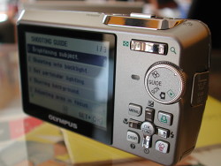 What most impressed me, however, was the Olympus Stylus 750's Guide option on the Mode dial. Dial in Guide and answer a few questions with a click of the navigator buttons and the camera sets itself up to solve whatever problem confronts you. Very, very slick.