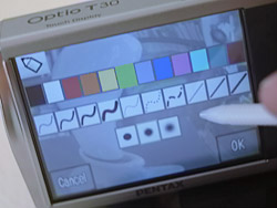 Jot a Note. The T30's touch screen, like the mic, also provides a note taking capability. You can draw on the screen and record the image as a memo. While you can use your finger, your drawing with the stylus will make your notes look like you have attended an institute of higher learning. I also tried the plastic tip of a retracted ball point pen (only the plastic of the pen touched the screen) and that worked fine.