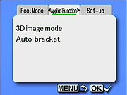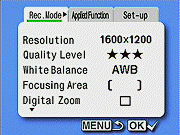 Movie Mode: The final position on the Mode dial, this mode captures moving images without sound. The Record menu is identical to that of the Full Selectable mode, though the Applied Function menu isn't present. (Personally, I it rather confusing to have all the still-capture options included here. It's obvious that you can't record movies with a resolution of 1600x1200 pixels, and that the TIFF option doesn't apply to movie mode, but both options are present on this mode's menu screens. I'd much prefer that only those menu items which apply to a given camera mode be shown on that mode's menus.)
