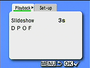- Slide Show: Activates an automated playback of all images on the card, with a selection of interval times from three to 30 seconds.