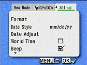 - Beep: Turns the camera's beep sounds on and off.