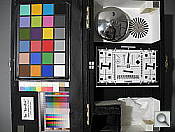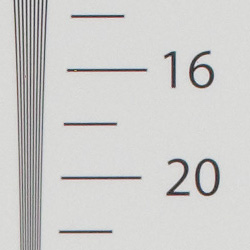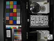 Our laboratory resolution chart revealed sharp, distinct line patterns down to about 1,600 lines per picture height in both directions from in-camera JPEGs, with some noticeable color moire. Extinction of the pattern occurred between 2,400 and 2,500 lines. There were also some "hot" or "dead" pixels that weren't properly substituted within some of the fine line patterns. We were able to extract a bit more resolution (1,700 to 1,800 lines of strong detail) with fewer artifacts by converting a RAW file with Adobe Camera RAW. Extinction of the pattern was also extended to between 2,600 and 2,800 lines in converted RAW files. Use these numbers to compare with other cameras of similar resolution, or use them to see just what higher resolution can mean in terms of potential detail.