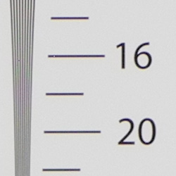 High resolution with ~1,600 lines of strong detail from in-camera JPEGs, about 1,700 to 1,800 lines from RAW files.