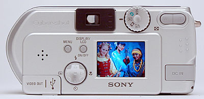 Exposure is automatically controlled on the DSC-P71, great for novices and casual users looking for simplicity. An On/Off button on top of the camera powers the camera on, and a Mode dial on the back panel lets you select between Scene, Automatic, and Movie exposure modes. Within Scene mode, you can select Twilight, Twilight Portrait, or Landscape "scenes." Both Twilight modes optimize the camera for low-light shooting by allowing shutter times as long as two seconds, while Landscape mode sets the camera up for shooting broad vistas. Although the camera controls aperture and shutter speed, the Record menu offers White Balance, Exposure Compensation, Spot Metering, ISO, Record Mode (Normal or E-mail), Sharpness, Flash Level, Picture Effects, Focus, and image quality and size settings. Even though the camera always controls both shutter and aperture settings, I appreciated the onscreen display that shows the settings its chosen whenever you half-press the shutter button - I think such displays do a great deal to help people understand the effects of shutter speed and aperture, demystifying the camera's operation. Under the Picture Effects setting, you can record images in black and white or sepia monotones, or select the Solarize or Negative Art options. The DSC-P71's flash operates in Forced, Suppressed, Auto, Red-Eye Reduction, and Slow-Sync (Twilight Portrait only) modes.