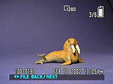 In Movie exposure mode, the camera captures either 320 x 240-, or 160 x 112-pixel resolution moving images (without sound) for as long as the memory card has available storage space, with an available HQX quality setting for higher image quality at the cost of larger file sizes. The DSC-P71 also offers Clip Motion and Multi Burst modes. Clip Motion records a series of up to 10 images that are automatically saved in a single animated GIF file, and that can be played back as an animation sequence. (A feature I enjoyed on previous Cyber-shot digicams.) Multi Burst mode captures an extremely rapid 16-frame burst of images, at a selectable rate of 7.5, 15, or 30 frames/second. Multi Burst shots are played back as a slow-motion animation on the camera, but appear as a single large file with 16 sub-images in it when viewed on a computer. (Great for tennis and golf swings!) A Self-Timer mode provides a 10-second delay between the time the Shutter button is pressed and the camera actually takes the picture, giving the photographer time to run around and get in the picture him/herself.