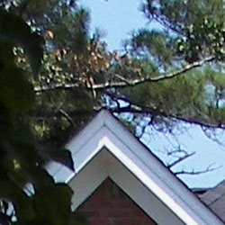 The Kodak EasyShare P712 Zoom captured pretty sharp images overall, though with some softening in the finer details. The crop above left shows this slight softness as well as some visible artifacts from edge enhancement along high-contrast edges. (Note the dark line along the edge of the bright white eave of the house. Edge enhancement creates the illusion of sharpness by enhancing colors and tones right at the edge of a rapid transition in color or tone.)