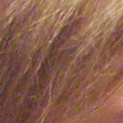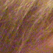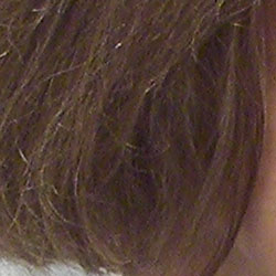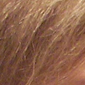 Noise-suppression systems in digital cameras tend to flatten-out detail in areas of subtle contrast. The effects can often be seen in shots of human hair, where the individual strands are lost and an almost "watercolor" look appears. The crop above right shows some flattening from noise suppression, but also more image noise than we'd expect to see in an ISO 100 shot. The noise itself and the camera's noise suppression both impact detail definition here.