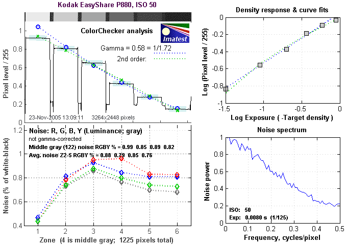 Detailed analysis of the Kodak EasyShare P880 images, from Imatest(tm)