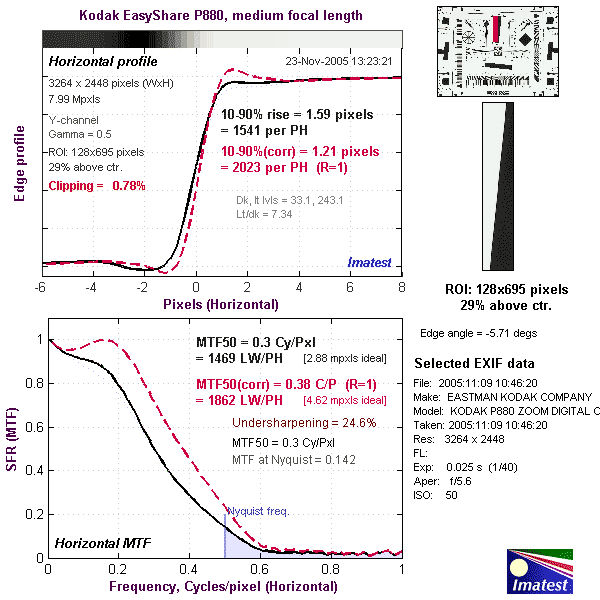 Here's some of the results produced by Imatest for the Kodak P880: