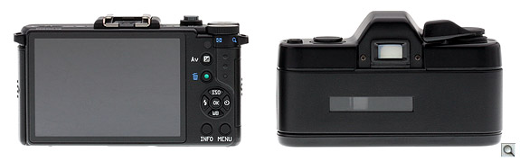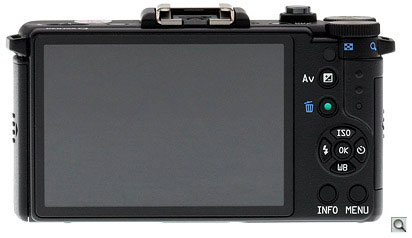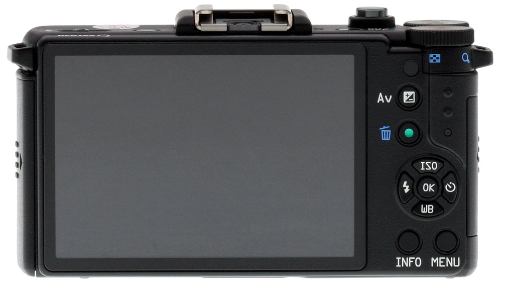 Most of the buttons are marked, and so self-explanatory. The markings are small enough that those with poor near vision might have trouble, but they would also have trouble with the interfaces on the C3 and GF3, so I think Pentax has made a good choice here. Just above the Exposure Compensation button is a secondary IR remote port, compatible with the same remote control units as are the company's larger SLRs.