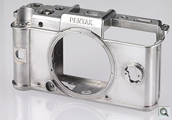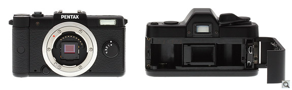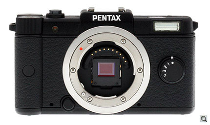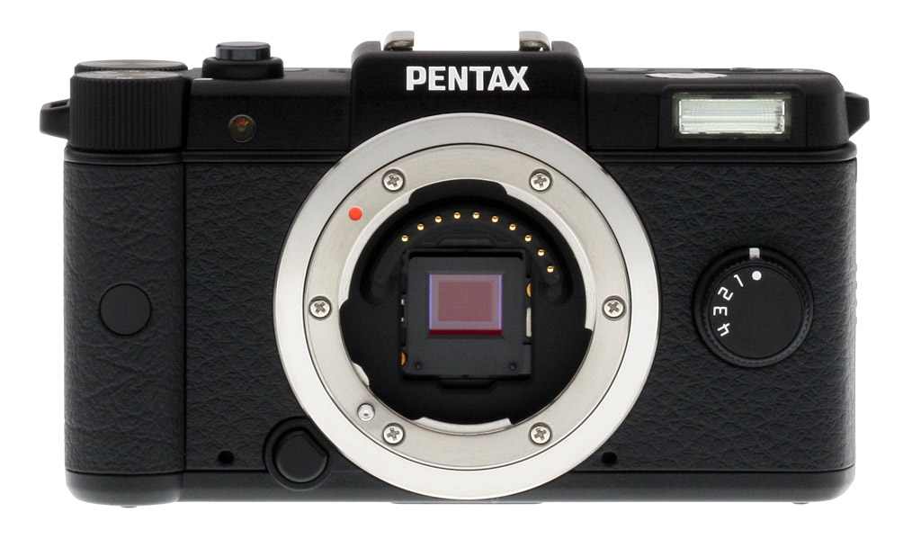 Lens mount. Accompanying the Pentax Q's image sensor is a new stainless steel lens mount that's significantly smaller than the K-mount used on Pentax's digital SLR cameras. Dubbed the Q-mount, this has an outer diameter that's almost one-third smaller than that of the K-mount, allowing a reduction not only in camera body size, but also in the size of attached lenses. Like other compact system cameras, with no need to accommodate a bulky mirror box, optical viewfinder, dedicated autofocus and metering sensors, etc., Pentax has been able to reduce flange back distance--which relates closely to body thickness--by a whopping margin of close to 80%. Flange back distance for the Pentax Q is just 9.2mm, around half or less than that of the Sony E-mount (18mm), Micro Four Thirds mount (20mm), and Samsung NX mount (25.5mm).