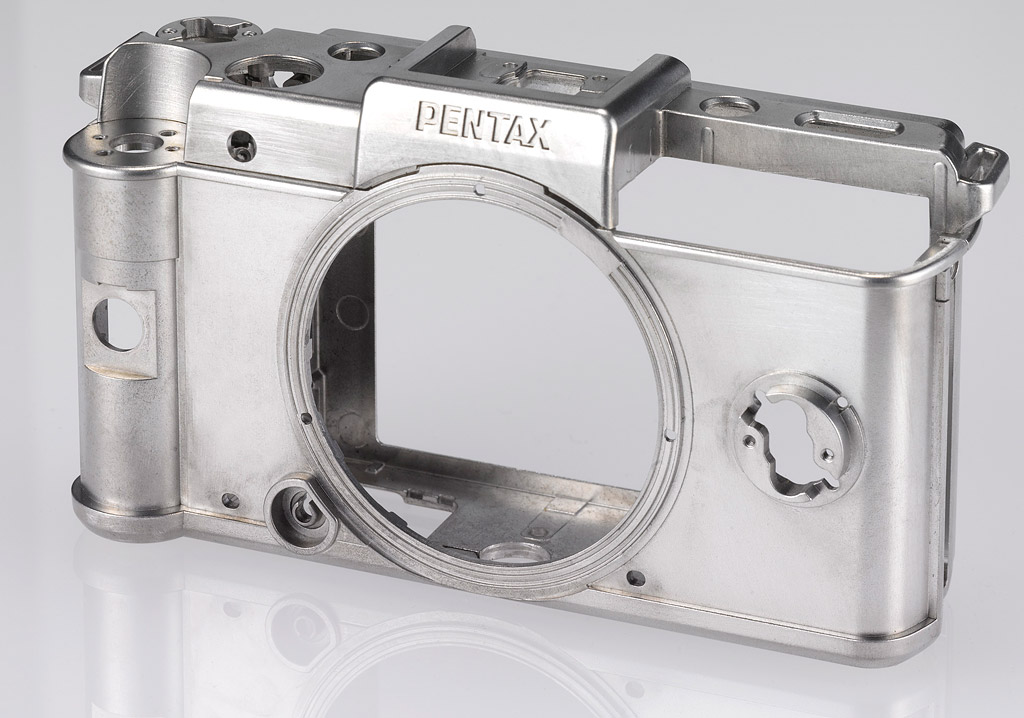 Build. With all of its latest digital SLRs, Pentax has demonstrated its ability to build a high quality camera, and the Pentax Q's magnesium alloy build feels more serious than a simple pocket camera, despite its Lilliputian stature. Pentax's impressive line of Limited SLR lenses, in particular, seem to be echoed in the quality of the 8.5mm Standard Prime kit lens. Both the lens and mount are steel and have a tight, precision fit.