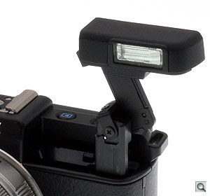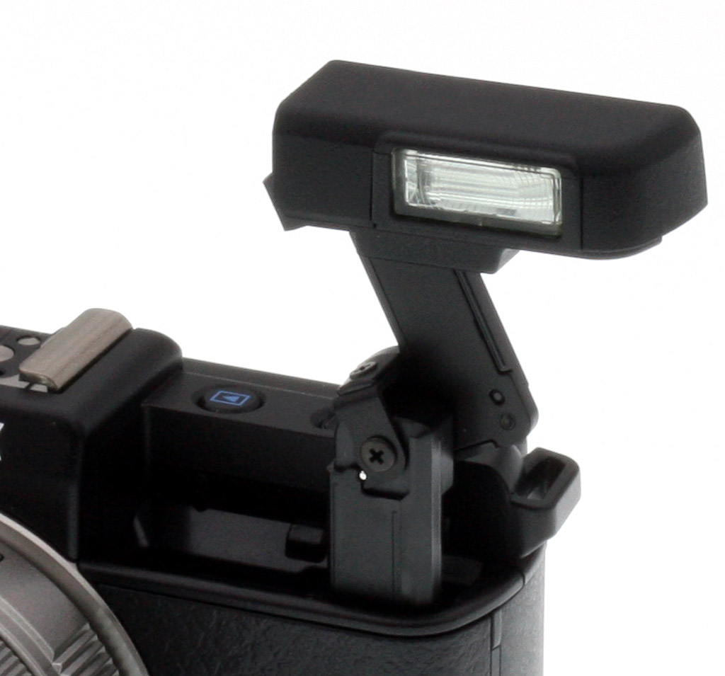 Getting back to that pop-up flash, it is a bit of a marvel itself, demonstrating that there is a way to get built-in flashes a little further from the lens through the application of clever engineering. First, with a slide of the mechanical release, a springloaded plunger rises from inside the Pentax Q's body, then opposing sprung levers both lift the flash and level it again in its final resting position. A simple downward press puts all back into place, quite well concealed and compact.