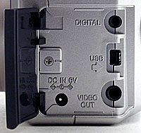The I/O jacks (Digital, AC, USB and Video) live on the opposite side of the camera, beneath a plastic cover that slide locks into place. iMac and recent PowerMac users will be very happy that the camera supports USB in addition to the standard serial cable.