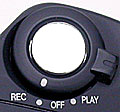 Located on top of the camera and surrounding the shutter button (see the photo above), this dial puts the camera in Record, Off or Playback modes. One of our few complaints about the QV-3000's user interface was that the "off" position on this dial had a very light detent on it, making it easy to overshoot when turning the camera off, and end up putting it into either play or record mode, as the case may be.