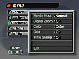 Accessed by hitting the Mode button and scrolling around to the movie symbol, this mode allows you to make up to 30 second, soundless movies depending on the amount of CompactFlash space available. Pressing the Menu button in this mode pulls up the record menu as in Program mode.