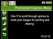 Photosmart Express Menu (Accessed through the Photosmart Express Button on top of the camera):