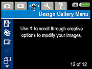 - Using Design Gallery: Describes the various artistic effects available on the camera, what they do, and when they should be used.