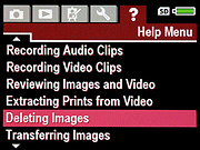 Deleting Images: Describes how to delete images and video clips from the camera, how to format the camera's internal memory or flash card, and how to undelete the last image (or group of panoramic images). - Transferring Images: Describes how to transfer images from the camera to a desktop computer over the USB connection.