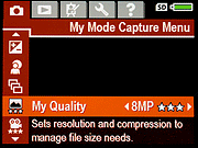Image Quality: Sets resolution and compression to manage file size needs. Settings are 8MP*** (Best), Normal (8MP**), 5MP **, 2MP**, VGA** and Custom. - Video Quality: Sets resolution and frame rate to manage file size needs. Settings are Normal (VGA***), VGA**, QVGA*.