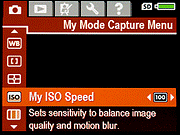 ISO Speed: Sets the camera's sensitivity to Auto, 100, 200 or 400 ISO equivalents. - Saturation: Controls the level of image saturation, with choices of Low, Medium or High.