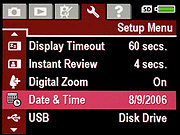 - Date & Time Imprint: As well as the date and time information that is always stored in the EXIF header of images, the R927 can also permanently record this information on the image itself, similarly to how 35mm point-and-shoot cameras can. This menu option allows you to opt to record the date and time information on the image if desired, with menu options being Off, Date Only, or Date & Time.