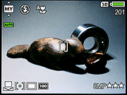 Apply Artistic Effects: Lets you apply a variety of artistic effects to captured images. The process is simple -- scroll through to an image you'd like to modify, hit the menu button and then toggle over to the Design Galley Menu. Move down to Apply Artistic Effects and hit ok and after a few seconds you'll be presented with 13 effects to choose from - Ink Dots, Cartoon, Watercolor, Center Focus, Posterize, Retro, Soft Glow, Vintage, Slimming, Sky Color, Ground Color, Kaleidoscope and Solarize. - Modify Color: Lets you apply a variety of colors to captured images. The process is similar to Apply Artistic Effects and choices include: Black & White, Sepia, B&W Tints, Color Tints.