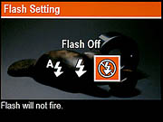 - Bracketing: Enables or disables the camera's automatic bracketing features, which captures three images with varying modifications . All three images are captured sequentially with a single press of the shutter button, and the LCD monitor remains blacked out from when the first shot is captured, until the last shot has been captured. With Adaptive Lighting Bracketing engaged, the camera takes three shots with differing ALT levels: off, low, and high. With Exposure Bracketing engaged, the camera takes three pictures with varying EV Compensation by 0.3 stops in each direction. With Color bracketing engaged, the camera takes three pictures in full color, B&W, and Sepia.