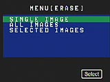 You can erase images in Erase mode, with the option of erasing the last frame displayed, all frames, or selected frames. Formatting erases all images on the card, including protected images, and reinitializes the SmartMedia card.