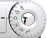Mode Dial: Encircling the shutter button on the top panel of the camera, this large, notched dial selects the camera's operating mode. Options are:
