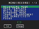 Record Mode: This mode is noted on the Mode Dial with a green camera symbol. Here, you can record still images with a variety of recording and exposure mode options available. Pressing the Menu button displays the following settings menu: