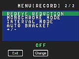 Exposure control is relatively straightforward on the RDC-6000, as the LCD menu system drives the majority of the exposure functions. The flash mode, self-timer, digital telephoto, ISO, and image quality settings are all accessed through external controls. Most exposure functions are automatically controlled, although the camera does offer an Aperture Priority mode which allows you to select the desired lens aperture setting, from f/2.8 to f/13, while the camera selects the best corresponding shutter speed (which ranges from 1/500 to 1/4 second in still Record mode). Program mode chooses both shutter speed and aperture, but you can change the camera's settings by adjusting Exposure Compensation, ISO, and Flash mode. You also have full control over Recording mode, White Balance, and PIC (image quality and compression) settings.