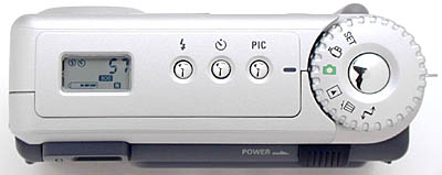 On the top panel of the RDC-6000 are three control buttons (flash, self-timer, and image-quality controls), the mode dial, shutter button, and a small, black-and-white status display panel that reports most camera settings. (We're always glad to see a status display panel, as it enables you to work without the LCD monitor activated.) The mode dial is nice and large, with easy-to-grip notches around the outside of its bezel.