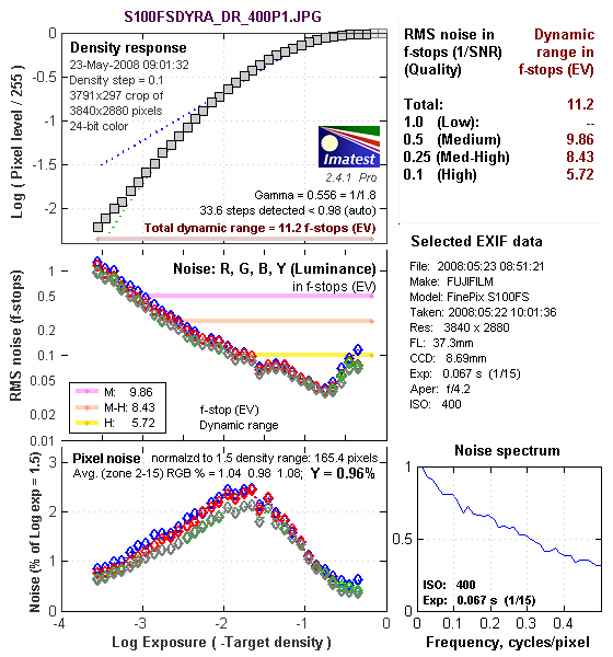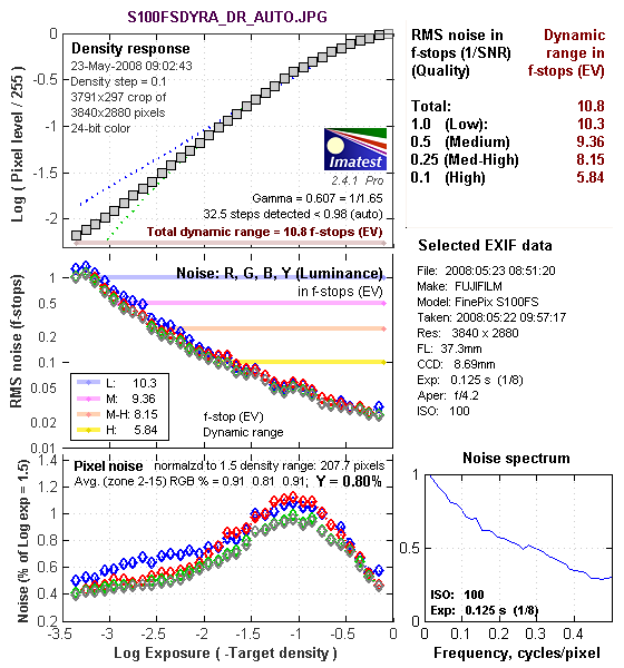 Imatest Dynamic Range Analysis Results | |