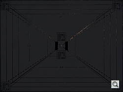 Manufacturer Specified Flash Test. In Auto ISO mode, Fujifilm rates the S100FS' flash range at 7.7m / 25.3 ft at wide angle, and 3.8m / 12.5 ft at telephoto. As you can see, the 25.3 foot distance is out the door of the studio and into the rest of the lab area. Even at ISO 400, the target is very dim here, probably in-part because the metering system was responding to all the light bouncing off the light-colored walls of the outside of the studio. (On the "we'll-get-to-it-someday" list is the task of painting the white walls a dark grey.) Results at full telephoto are pretty good, but still a bit dim, and the camera had to boost the ISO to 800, which is somewhat noisy. The FinePix S100FS does have a flash hot-shoe, so you can always increase flash range with an external flash unit.