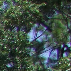 Chromatic Aberration Correction from RAW - Beyond basic sharpness improvements sophisticated RAW converters like Adobe Camera RAW in Photoshop CS3 can correct for chromatic aberration and other lens artifacts. In the case of the shot above, ACR removed almost 100% of the CA distortion, and that correction increased sharpness in the corners of the frame as well. As such, the Fujifilm S100FS is a camera that's ideally suited for someone who knows how to use a RAW converter to best advantage, to get the last bit of detail out of an image.