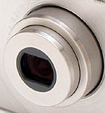 Like earlier members of the Digital ELPH family, the S110 is among the slickest digicams we've seen. Its solidly built, all-stainless steel body measures only 3.4 x 2.4 x 1.1 inches (87 x 57 x 26.9 mm) with the lens fully retracted, and weighs about 8 ounces with the battery and CompactFlash card installed. It's so small, in fact, that it easily fits into the palm of one hand, and a credit card laid over the camera's front panel completely covers it from edge-to-edge. The 2x zoom lens telescopes outward approximately one-half inch when the camera is powered on in the Shooting (Record) mode, and retracts when the camera is powered off or in Playback mode -- protecting the delicate glass surface with a sliding lens cover.