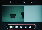 Exposure is automatically controlled at all times, with four Shooting modes selectable through the Record menu: Automatic, Manual, Stitch-Assist (with options to shoot from left to right or right to left), and Movie. In Automatic mode, the user has control over Resolution, Compression, Flash, Self-Timer, and Normal or Macro focus modes. Manual mode expands the user controls to include Exposure Compensation, White Balance, Infinity focus, and Continuous Shooting. Stitch-Assist is Canon's panoramic mode, allowing you to take a series of up to 26 images to be "stitched" together on a computer. In Stitch-Assist mode, the camera retains all functions except Digital Zoom, Red-Eye Reduction, Auto Flash, and Continuos Shooting modes. (However, all readings are based on the first frame in the series and cannot be changed in subsequent frames.) Movie mode offers no Flash, Continuous shooting, or Compression settings, and the Resolution options are reduced to 640 x 480, 320 x 240, oand 160 x 120 pixels. All other features remain intact.