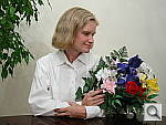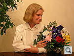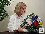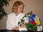 The extreme tonal range of this image makes it a tough shot for many digicams, which is precisely why I set it up this way. The object is to hold highlight and shadow detail without producing a "flat" picture with muddy colors, and the PowerShot S200 performed very well. The shot at right was taken without any exposure adjustment, since the default exposure produced good midtones but still held highlight detail pretty well. This is an unusually accurate exposure as the high overall brightness of this shot tricks most cameras into underexposing significantly. I chose the Daylight white balance setting for the main shot, though the Auto setting produced good color as well. (The Manual white balance resulted in a slightly greenish cast.) Skin tones look about right, though just a tad magenta, and Marti's blue flowers and have only very slight purple tints (this is a very difficult blue for many digicams, but the S200 reproduces it almost perfectly). Resolution is also quite good (for a two megapixel camera), with a lot of fine detail visible throughout the frame. Details are slightly soft, but have good definition overall. Noise is moderate in the shadow areas. To see the full exposure series from zero to +0.7 EV, see files S20OUTDP0.HTM through S20OUTDP2.HTM on the thumbnail index page.