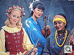 Good resolution and detail, with pretty accurate color. I chose the Auto white balance setting for this shot, though the Manual and Daylight settings also produced nearly accurate results. Manual white balance resulted in a cool shot with pale skin tones, and the Daylight setting was just a little too warm. (The large amount of blue in the composition often tricks digicams, but the S200 did quite well here.) Overall color looks good, and the blue robe is about right with only faint purplish tints in the deep shadows. Resolution is good, with a lot of fine detail visible in the embroidery of the blue robe, as well as in the beaded necklaces and the flower garland. |