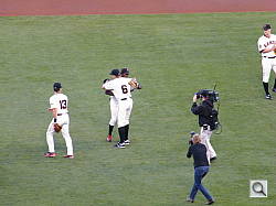 The Dodgers were on their way to the playoffs, but game two was special. J.T. Snow, a favorite here for his class and competitiveness, was retiring as a Giant in one of those one-day deals. The Golden Glover took the field at first base for infield practice and it was no trouble at all for the Giant infielders to throw the ball back to him like they were playing YMCA ball. Before the first pitch, he left the field to a standing ovation.