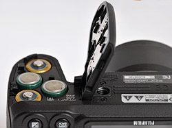 Battery Compartment. A bit difficult to open and close. Note the tripod socket behind the cover.