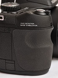 Despite its size, the grip isn't miniature, extended far out from the right side of the body to accommodate any size hand. It's a well-sculpted grip, too. You'll find your forefinger falling just where it should -- on the Shutter button -- as you wrap your hand around it. You can even get to the Power switch with a little twist of your forefinger. It isn't comfortable, but it can be done.