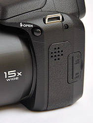 Because it's a 15x zoom, an optical viewfinder is impractical too. Instead the 0.02-inch electronic viewfinder provides 200K pixels with about 97 percent coverage when shooting (and 100 percent on playback). The EVF is surprisingly handy. I almost always preferred to use it when shooting outdoors when the sun made the LCD difficult to use. But there is no dioptric adjustment.