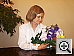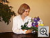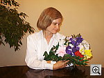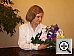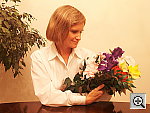 The S304's built-in flash does a good job of illuminating the subject, although we found we needed a bit of positive exposure compensation here. The shot at right was taken with +0.7 EV of flash boost, producing a nice balance between room lighting and the flash. We liked the fine control the S304 gave over flash brightness. We also liked the fact that the flash is pretty well color-matched with incandescent lighting, making for a good color balance between typical indoor room light and the flash output. Thanks to the warm lighting overall though, the blue flowers here are even more purplish than in the outdoor photo. Exposure Compensation Settings: