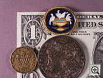 cast. Details are sharp on the coins and brooch, slightly less so on the
